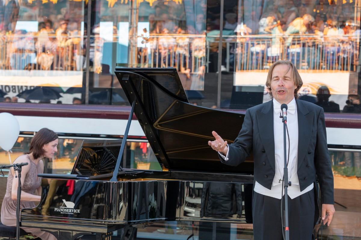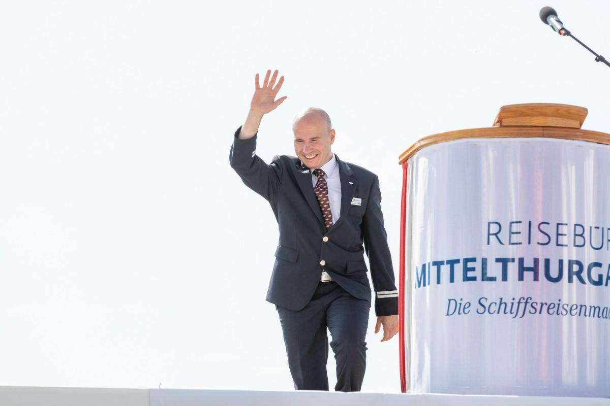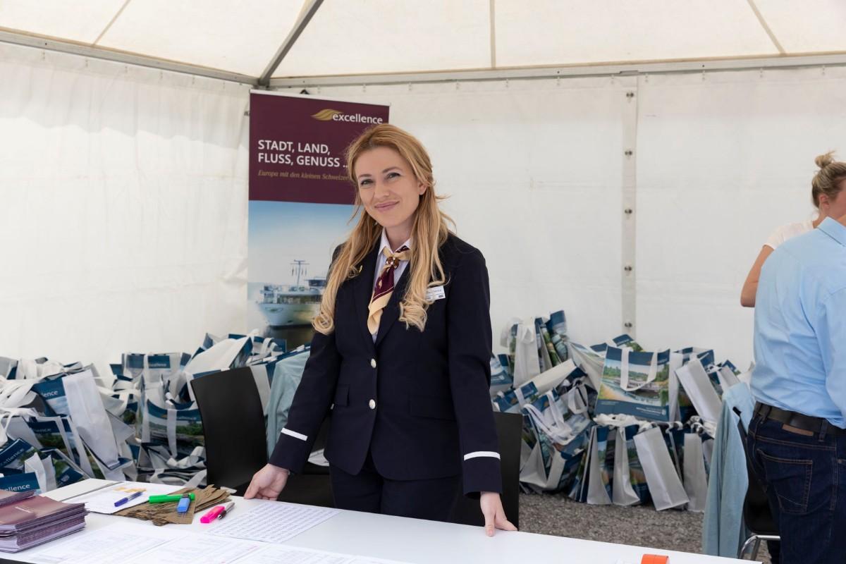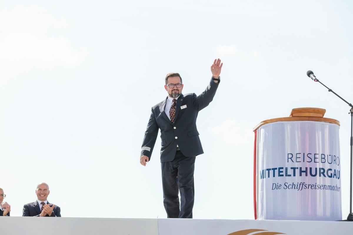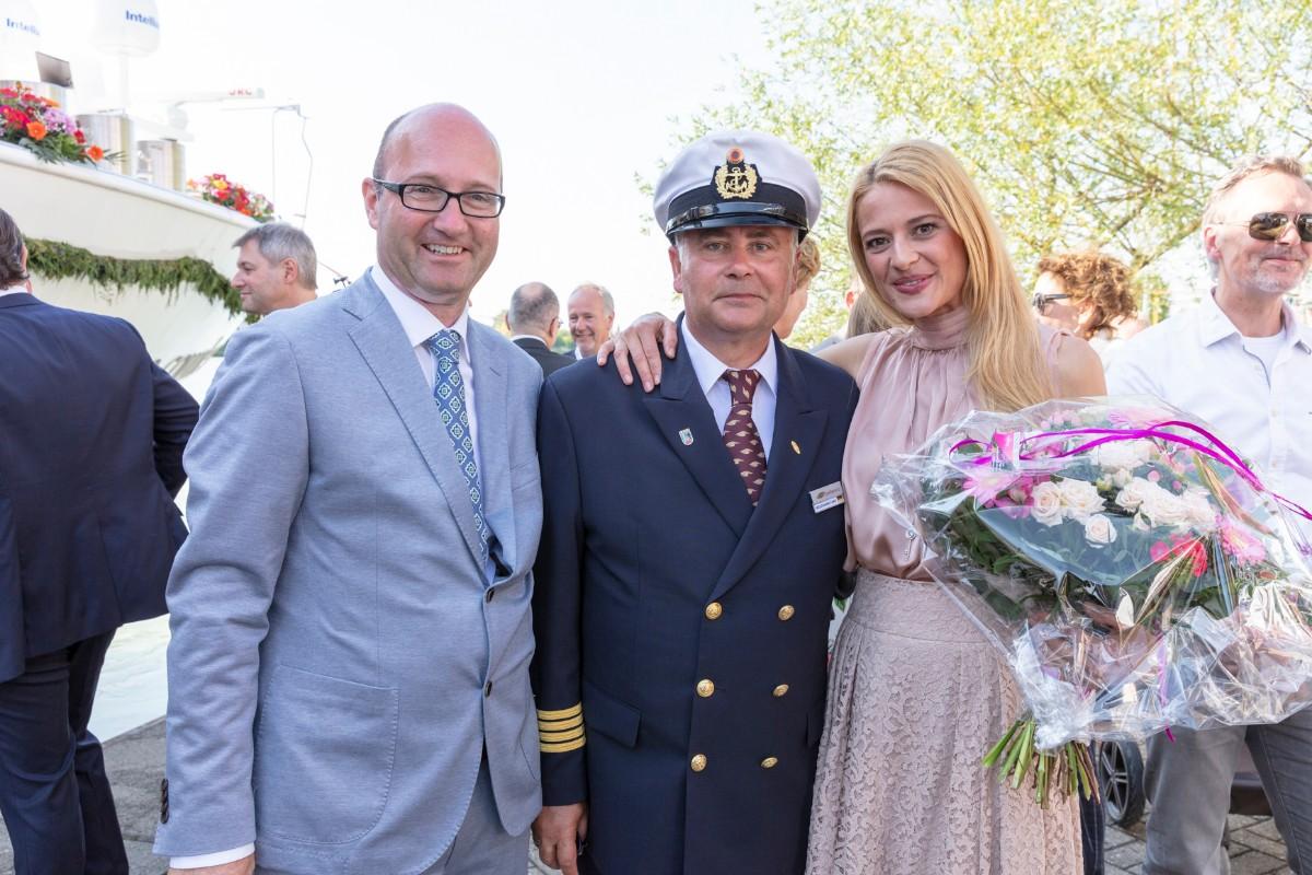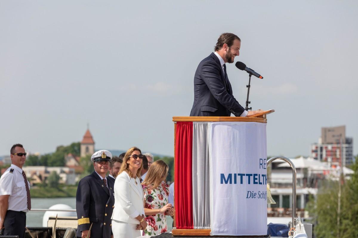 Pfarrer Felix Christ gab dem Schiff und seiner Besatzung Glück und Segen auf den Weg. Taufpatin war erneut die Excellence-Botschafterin Christa Rigozzi. Sie wünschte dem Schiff die traditionelle stete Handbreit Wasser unter dem Kiel und Sven Epiney führte gut gelaunt durch die Feier am Hafen. Zu den Höhepunkten der spektakulären Unterhaltungsshow gehörte der Auftritt des Berliner Baritons und Klangraum-Pioniers Burkhard von Puttkamer am Hafenkai, begleitet von Alina Pronina am Flügel. In begeisternder Weise wechselte Puttkamer am Ende ins Pop-Genre und doubelte Grossmeister Elton John. Impressionen von Puttkamers Schleusenkonzerten, die er exklusiv mit den Excellence-Schiffen in Schleusenkammern auf den Flüssen Europas durchführt, waren auf der Grossleinwand zu bestaunen, ebenso wie eine Videoproduktion, die den Bau des Schiffes und den Zeitdruck in der Teamco-Werft dokumentierte.