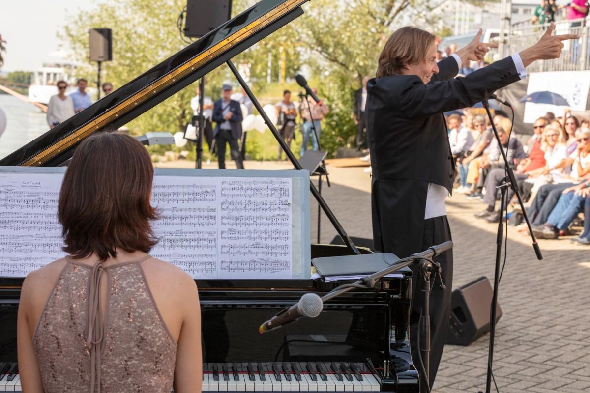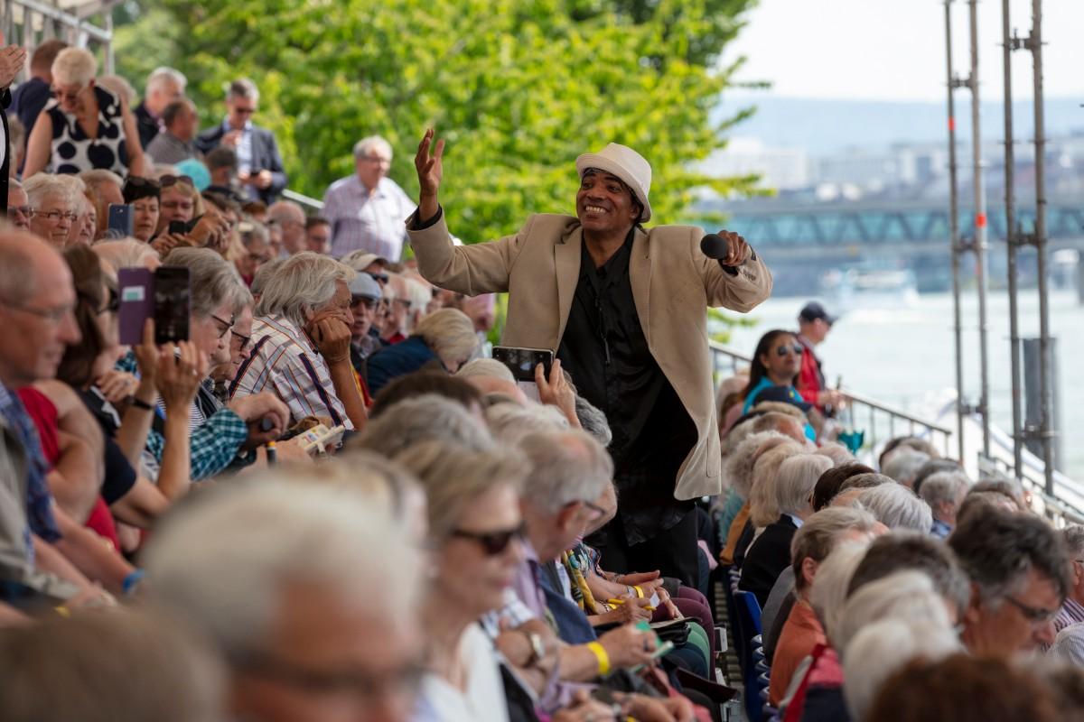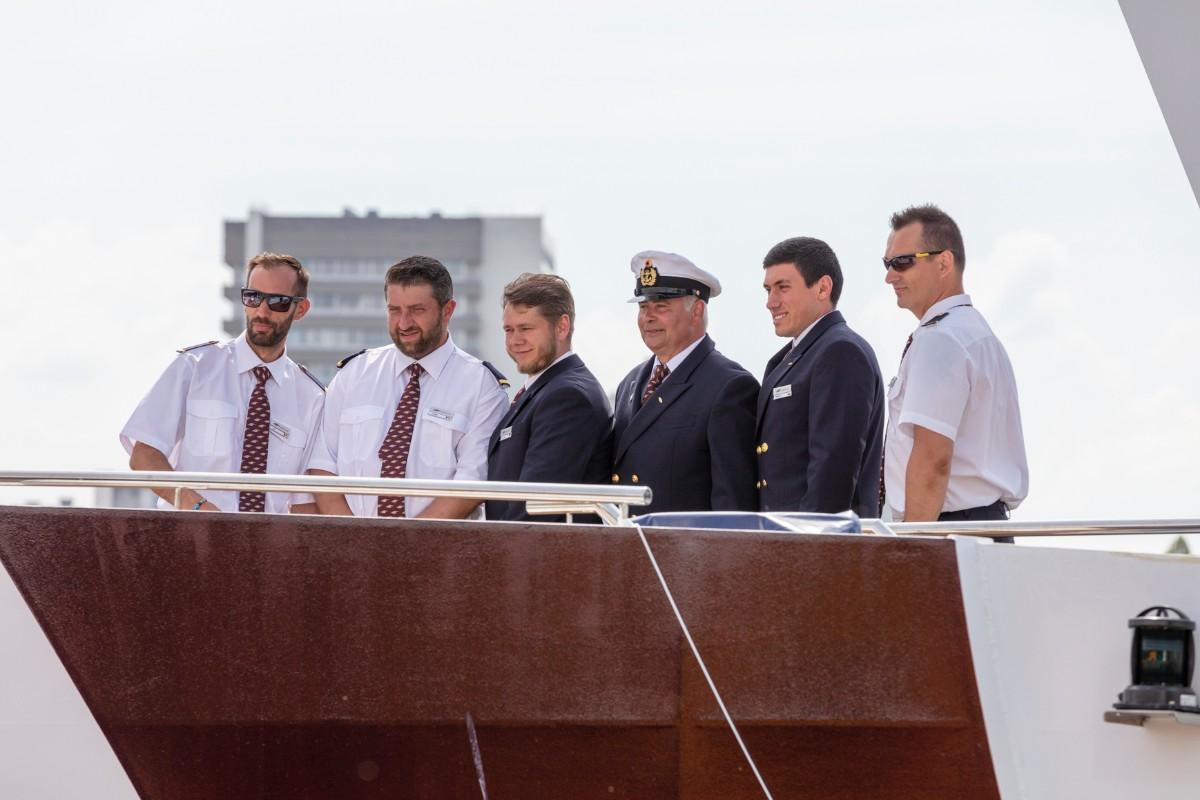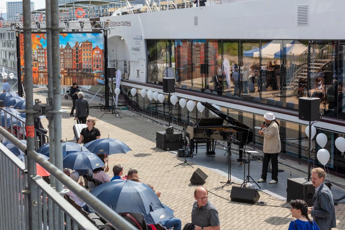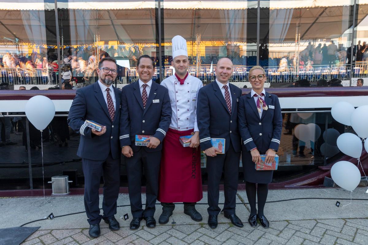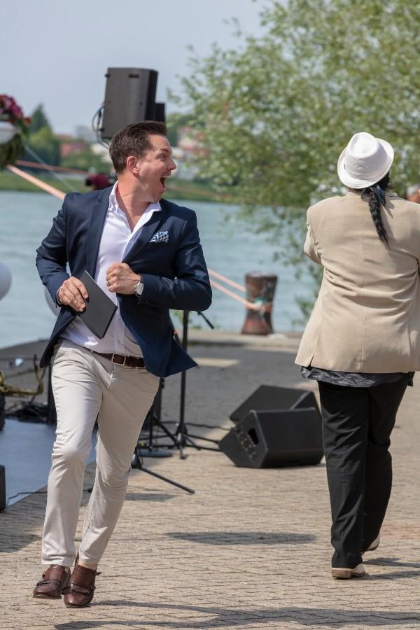 Pfarrer Felix Christ gab dem Schiff und seiner Besatzung Glück und Segen auf den Weg. Taufpatin war erneut die Excellence-Botschafterin Christa Rigozzi. Sie wünschte dem Schiff die traditionelle stete Handbreit Wasser unter dem Kiel und Sven Epiney führte gut gelaunt durch die Feier am Hafen. Zu den Höhepunkten der spektakulären Unterhaltungsshow gehörte der Auftritt des Berliner Baritons und Klangraum-Pioniers Burkhard von Puttkamer am Hafenkai, begleitet von Alina Pronina am Flügel. In begeisternder Weise wechselte Puttkamer am Ende ins Pop-Genre und doubelte Grossmeister Elton John. Impressionen von Puttkamers Schleusenkonzerten, die er exklusiv mit den Excellence-Schiffen in Schleusenkammern auf den Flüssen Europas durchführt, waren auf der Grossleinwand zu bestaunen, ebenso wie eine Videoproduktion, die den Bau des Schiffes und den Zeitdruck in der Teamco-Werft dokumentierte.