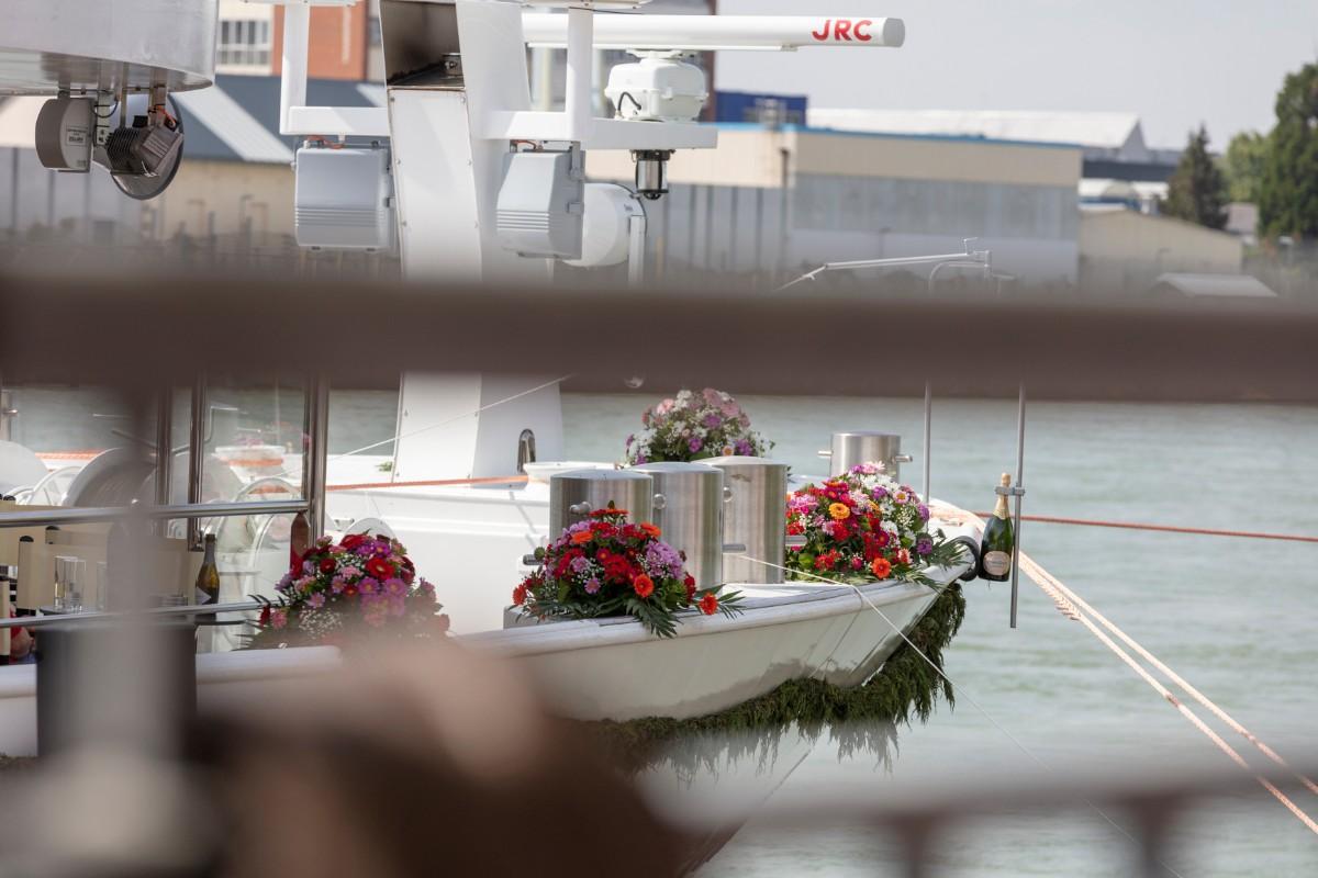 Mehr als 700 Gäste kamen, um die Taufe der «Gräfin» mitzuerleben. Für sie war bei schönstem Frühlingswetter eine unterhaltsame Show am Basler Schiffsanleger Klybeck vorbereitet. Als am Nachmittag die «Gräfin» am Hafen eintraf, nutzten viele die Gelegenheit, das neue Schiff in Augenschein zu nehmen.