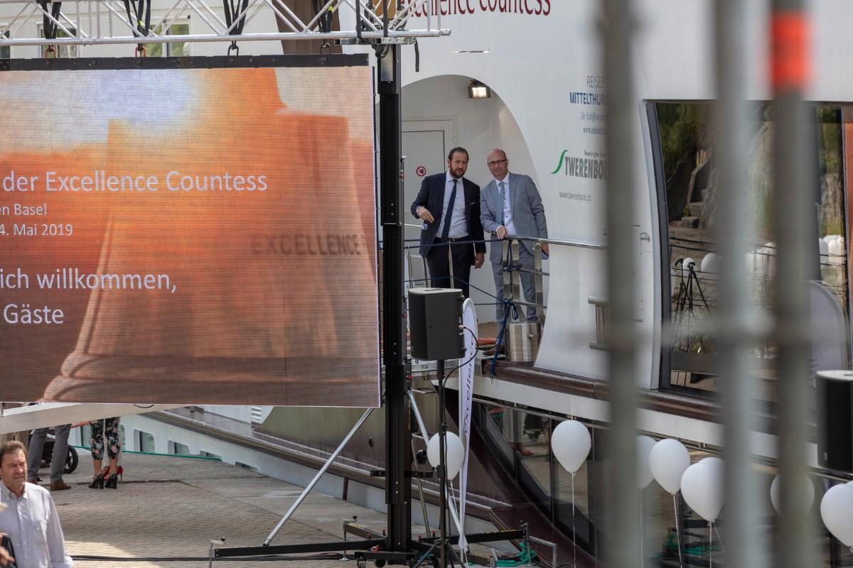 Wir haben uns sehr gefreut, dass fast 750 Gäste mit uns die Taufe der prächtigen «Gräfin» feierten. Es grenze an ein Wunder, dass die Excellence Countess überhaupt rechtzeitig fertig wurde, sagte Karim Twerenbold, VR-Präsident der Twerenbold Reisen Gruppe, in seiner Festrede. Im Herbst 2018 steckte das Schiffskasko fast zwei Monate im Niedrigwasser der Donau fest. So konnte die Stahlhülle des Schiffes nicht in die holländische Werft gelangen. Doch die niederländischen Schiffbauer brachten es fertig, die Excellence Countess in Rekordzeit fertigzustellen – auf den letzten Drücker, aber pünktlich zur Jungfernfahrt nach Basel. So konnte das Tauffest im Heimathafen wie geplant über die Bühne gehen.