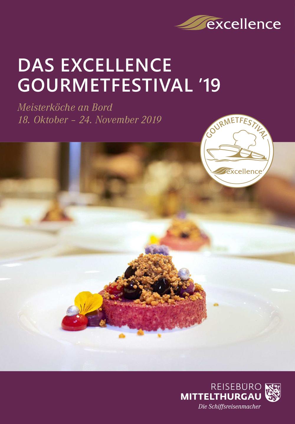 Das 7. Excellence Gourmetfestival ´19 für Freunde der feinen Küche findet vom 18.10. bis 24.11.2019 statt. Veranstalter ist das Reisebüro Mittelthurgau, führender Schweizer Anbieter von Flussreisen. Die exquisiten 2-tägigen Fine Dining-Trips zwischen Basel und Strassburg finden auf den Luxuslinern der Schweizer Excellence-Reederei statt.