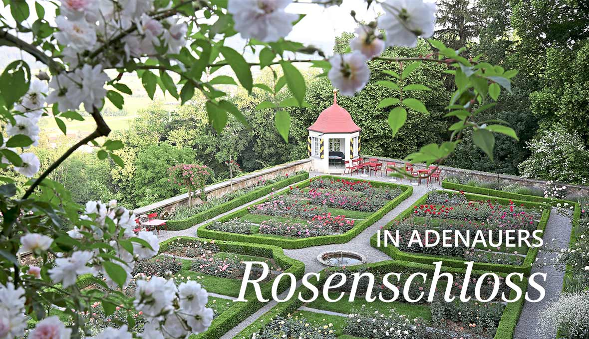 «Hier sollten Rosen stehen!», meinte der deutsche Bundeskanzler Konrad Adenauer 1951, verzückt vom traumhaften Panoramablick in den Gärten von Schloss Heidegg. Gesagt, getan! Heute lockt der kleine, aber feine Terrassengarten Rosenfans von nah und fern.