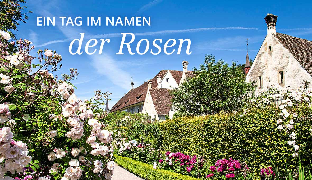 Klösterliche Idylle und traumhafte Gärten. In der Kartause Ittingen verbinden sich Rebberge, Hopfengärten, Gemüsekulturen und Blumenbeete zu einem einzigartigen Ganzen. Im Frühsommer entfalten hier über 250 Rosensorten ihren romantischen Blütenzauber.